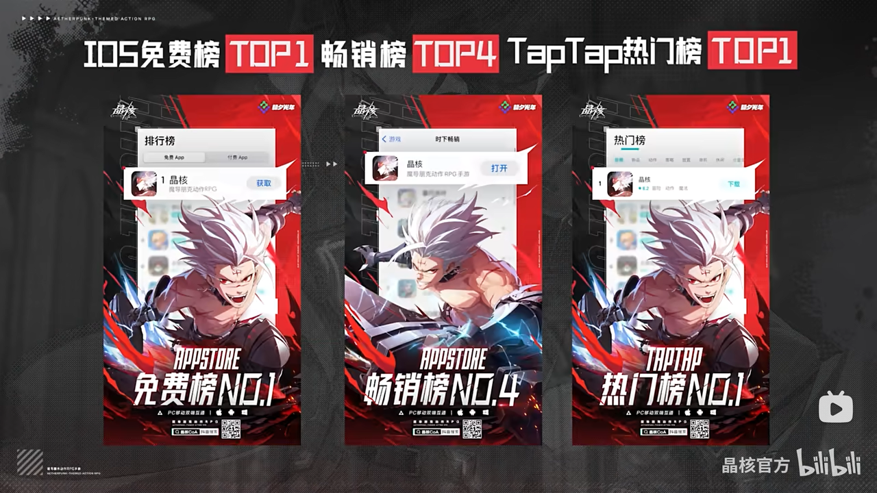 让我惊讶的是,《晶核》不仅取得了IOS免费榜第一,畅销榜第四,TapTap热门榜第一的“好名头”,还甚至还得到了与之匹配的流水数据,短短十二天达到了夸张到4-5亿元人民币。我认为晶核很可能一举成为国内ARPG最能吸金的游戏,并且我猜测《晶核》首月流水应当在15~16亿左右。