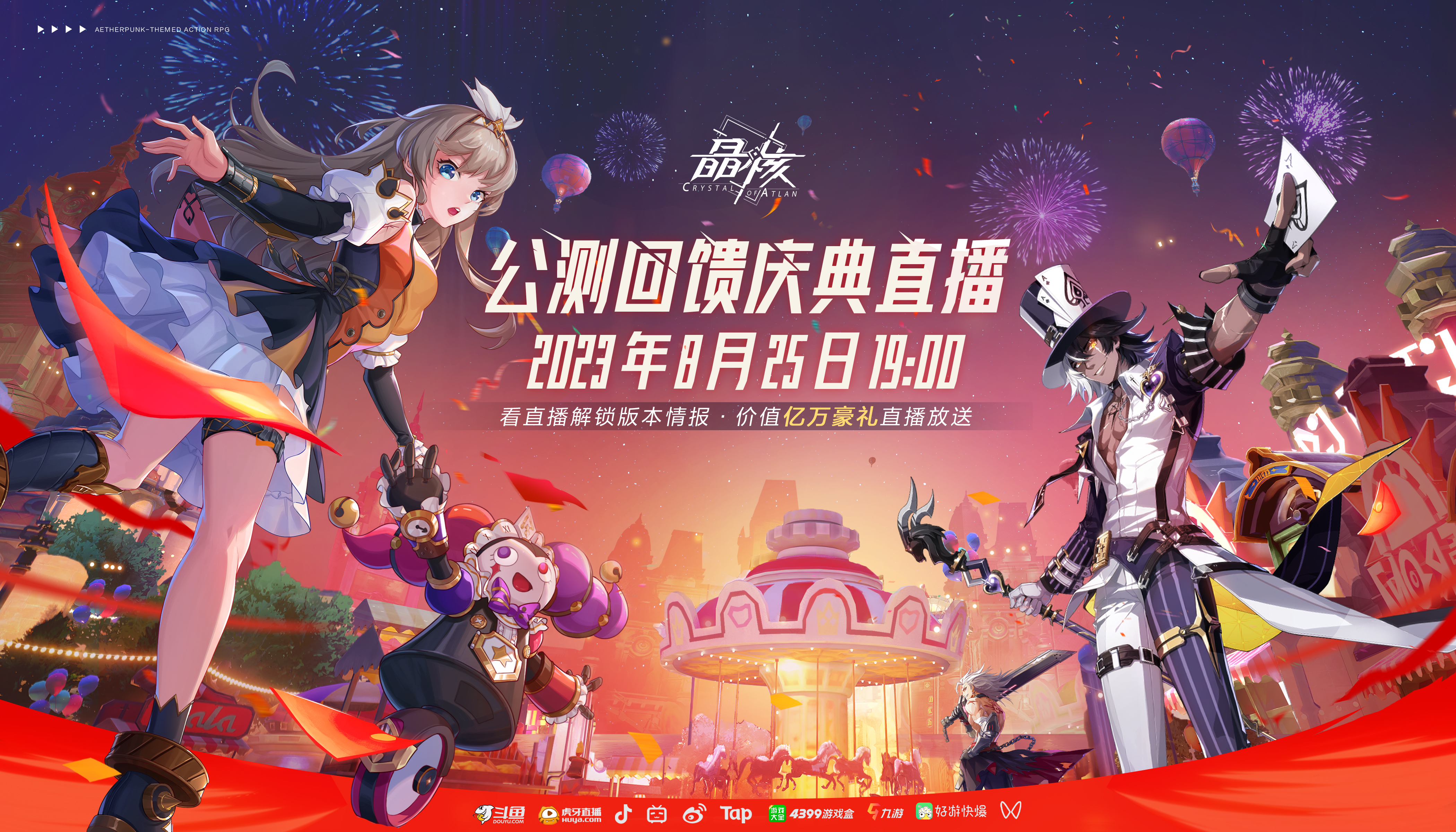 有官方消息称,8月25日晚18:30分,《晶核》将开启公测回馈庆典直播,并将特邀猫哥和游戏制作人,为我们玩家带来了满月礼物和版本爆料。我还看到消息中说,直播中还会跟各大主播现场连线,进行精彩的表演赛。