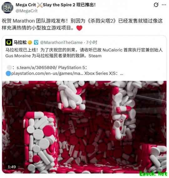 在社交媒体上,《杀戮尖塔》的开发团队Mega Crit发文,先是祝贺《马拉松》的漫长等待终于迎来发售,但结尾却不忘对这款大作狠狠地补了一刀。他们表示:“别因为《杀戮尖塔2》发售了,就错过了像这样用心的小众独立项目。”