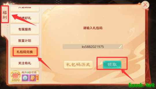 拿到礼包码后,请按以下步骤操作,将福利装入囊中: