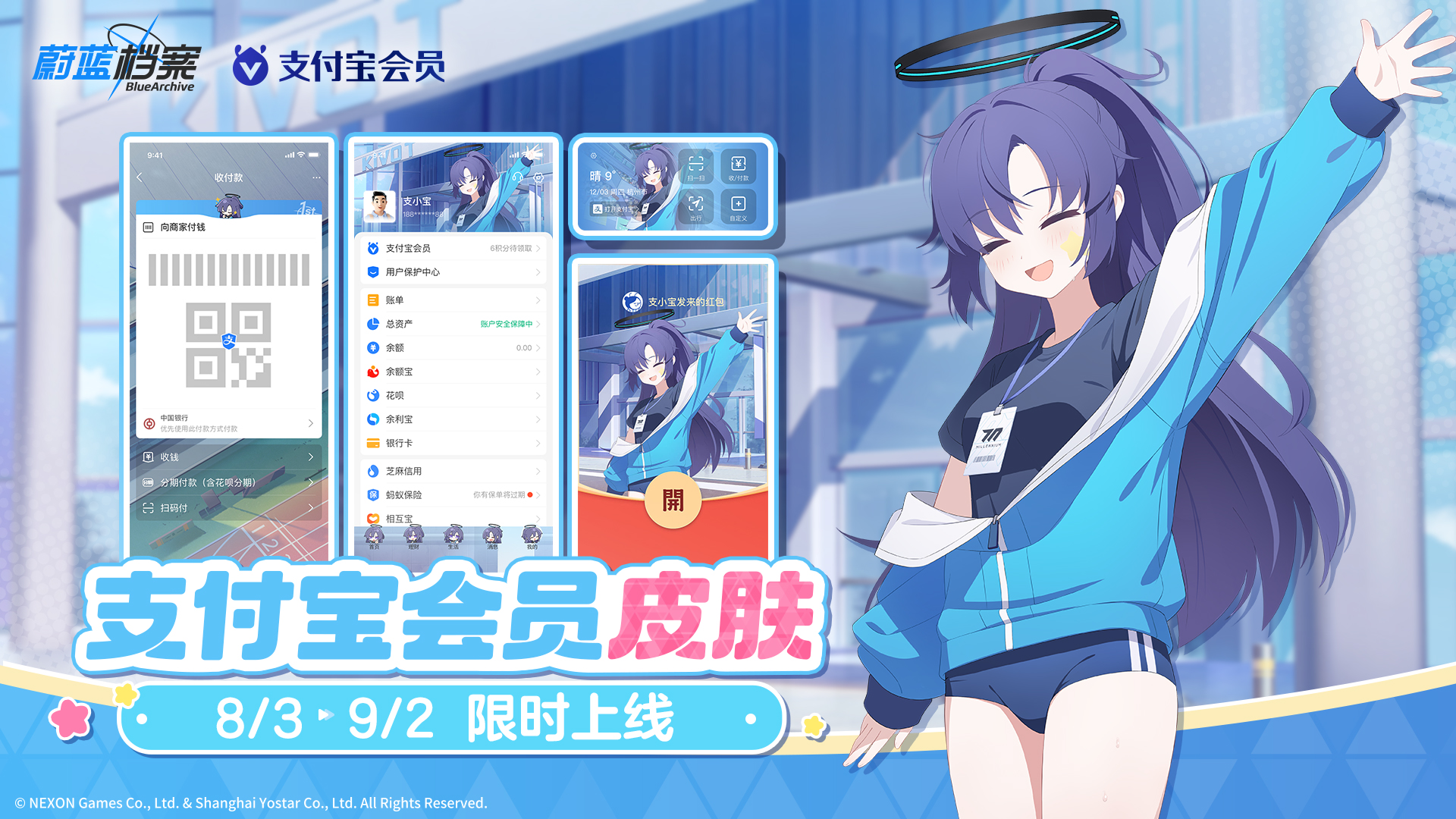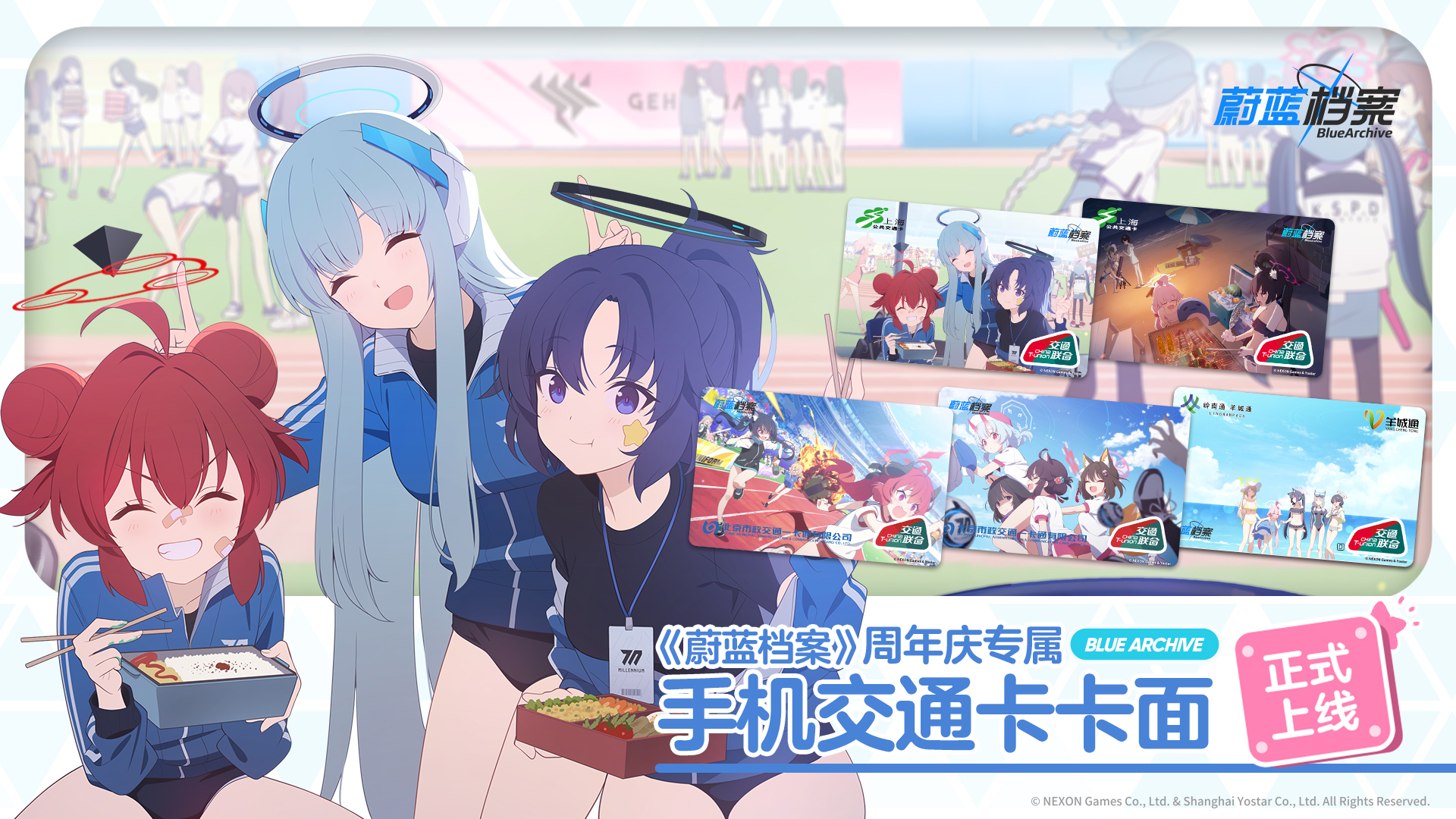 同时,为了让更多玩家能够一同参与到一周年庆典的热烈气氛中,《蔚蓝档案》也为大家准备了额外的福利内容。从7月11日起,通过北京一卡通、上海交通卡及岭南通的APP卡面商城 ,可以限时免费领取《蔚蓝档案》周年庆专属卡面。另外,《蔚蓝档案》也与支付宝推出了限时上线的主题皮肤,在支付宝APP中,通过会员页面中的IP潮玩馆即可免费领取,让这些可爱的基沃托斯少女们给予老师更多的日常陪伴吧~