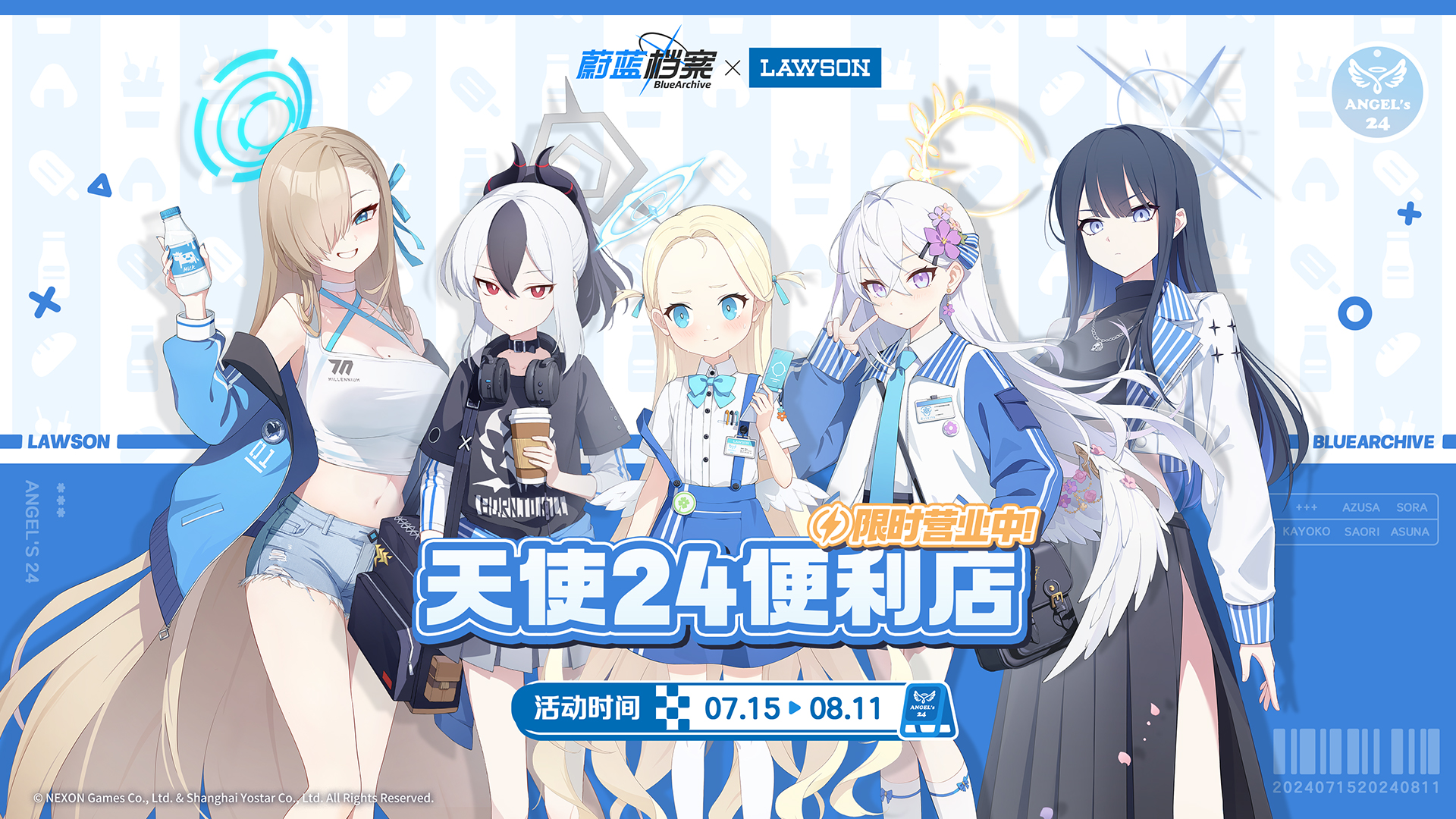 7月15日起,《蔚蓝档案》与罗森的联动将正式开启,天使24便利店罗森分店会在全国多个城市限时上线,并有一日店长、联动主题门店等活动。除此以外,《蔚蓝档案》与IPSTAR的联动也将于7月27日限时启动,在上海和广州将各有一家主题店,欢迎老师们前往打卡,体验定制的角色专属餐饮,开业当天还有特别惊喜放送!