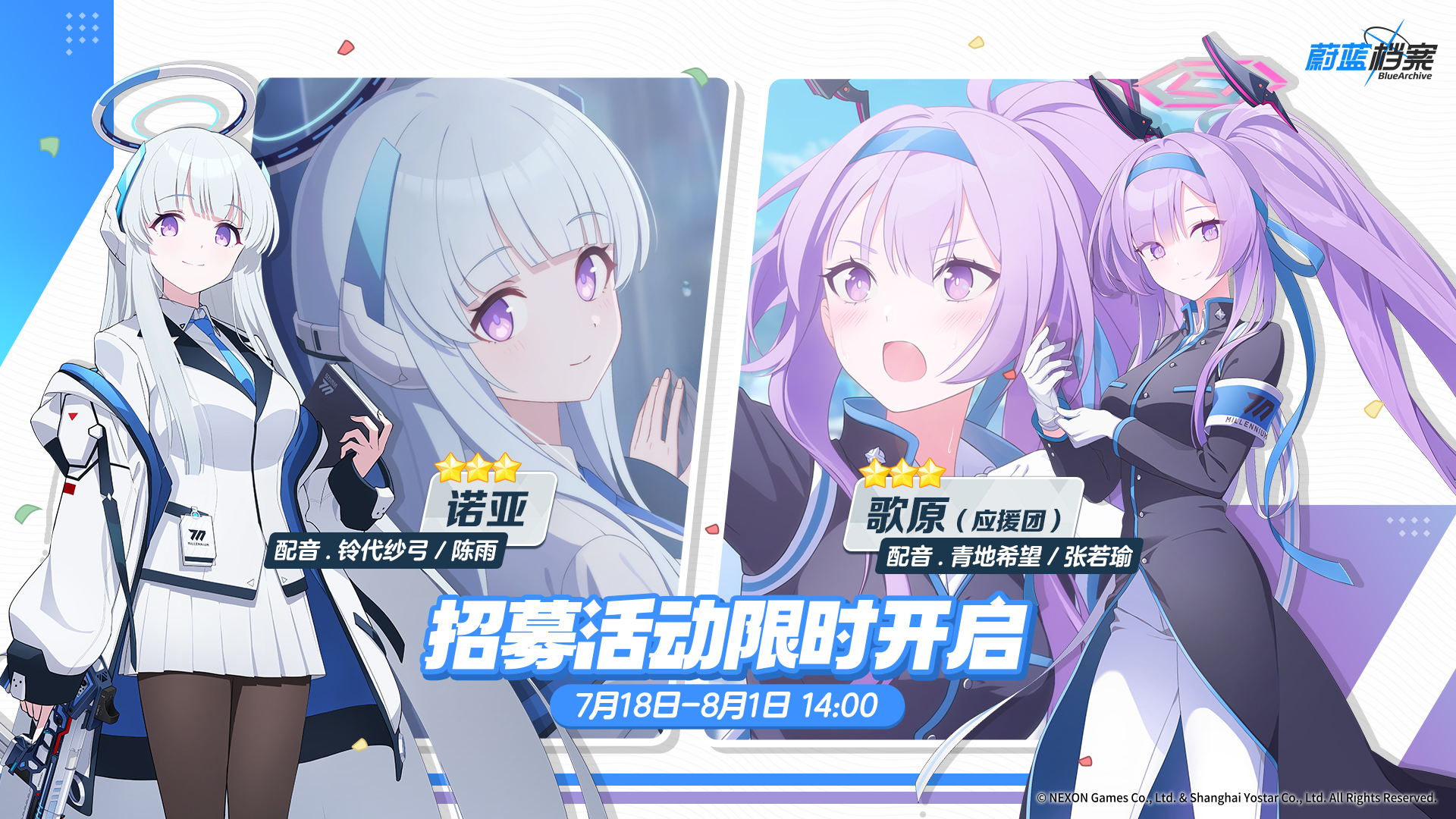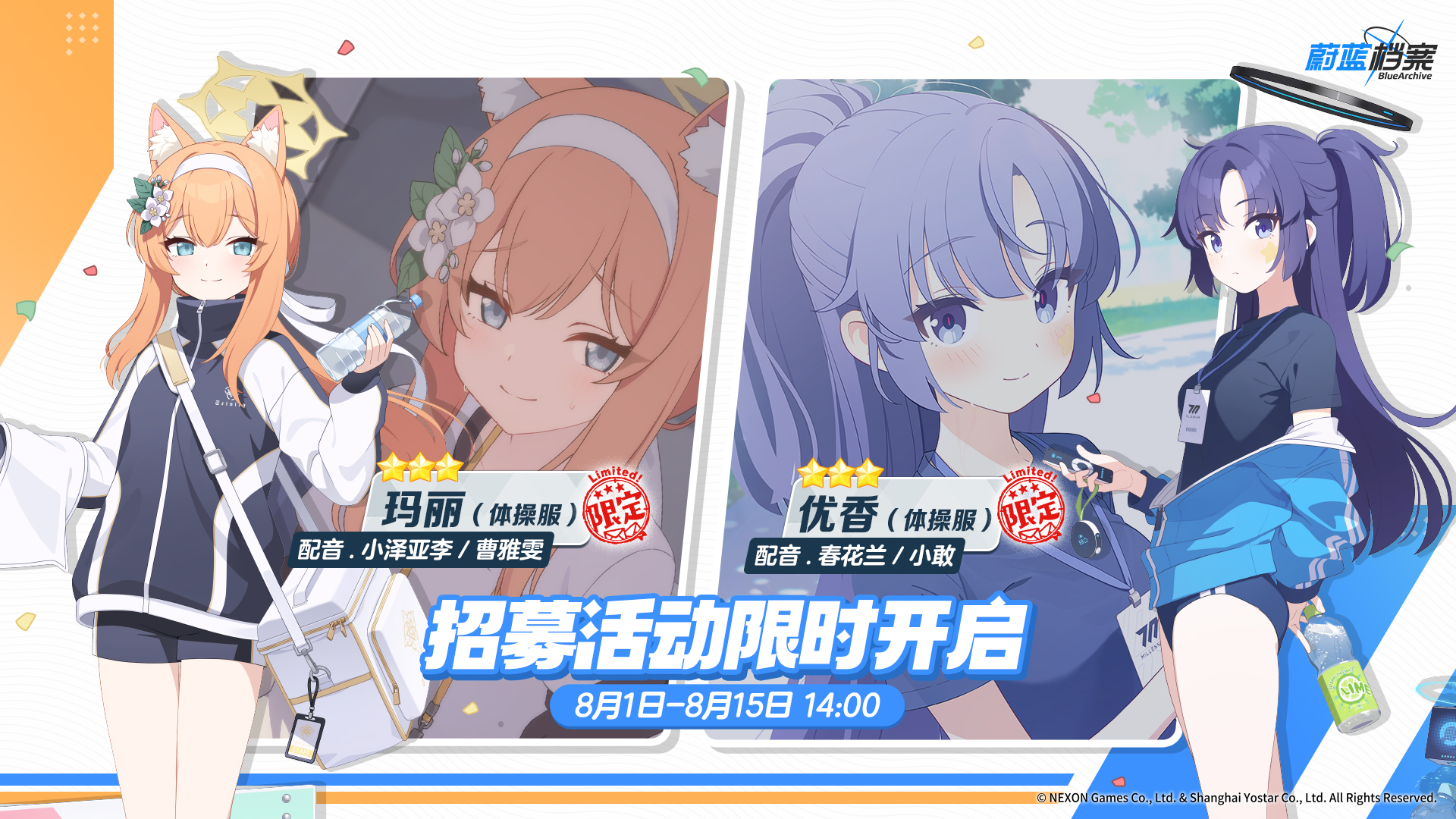 伴随着大运动的到来,招募活动也将限时开启,并获得限时招募概率提升!首先在招募卡池中登场的是全新常驻角色【诺亚(3★)】与换上新装的【歌原(应援团)(3★)】,紧接着则是全新限定角色【优香(体操服)(3★)】与【玛丽(体操服)(3★)】,同为神秘属性的她们将为小队战术提供了更多的可能性。除此之外,各位老师只要参与大运动会的两期活动,即可免费获得1★活动限定成员【响(应援图)】和1★活动限定成员【莲见(体操服)】。