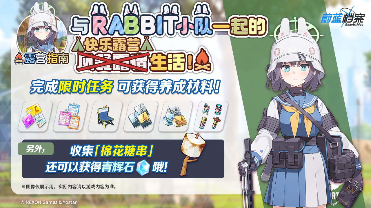 除此之外,《蔚蓝档案》官方最近公布的“阿洛娜的日程笔记(第8期)”(https://bluearchive-cn.com/news/646),预告了“卡班诺的兔子篇”第1章更新期间的精彩活动与丰厚奖励。包括总力战新赛季【总力战·霍德(街区)】、【总力战·切赛德(室内)】、【与RABBIT小队一起的风餐露宿快乐露营生活!】、限时网页活动【胡萝卜行动 野外特别篇】等。同时,官方也为老师们准备了丰厚的活动福利,参与活动便可获取青辉石与大量的养成材料,助力各位老师获得更好的游戏体验。