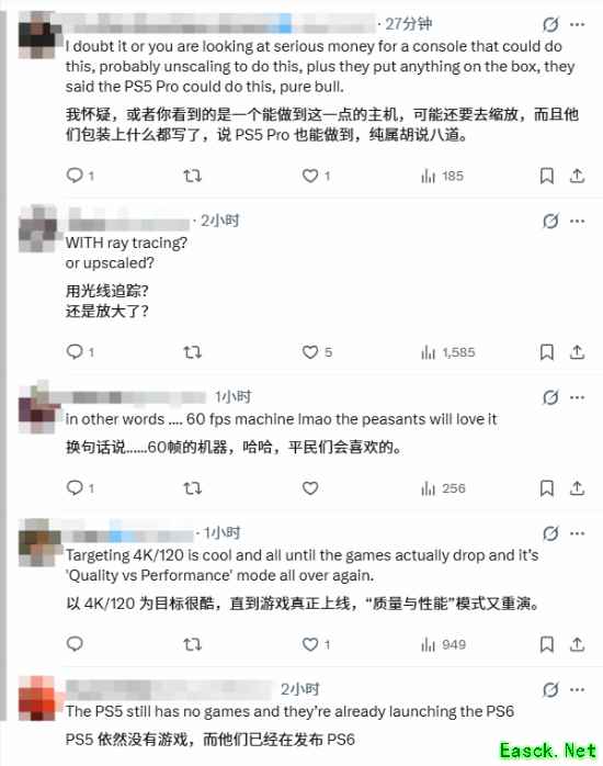 此外,不少玩家对 PS6 的定价表示担忧,认为实现 4K/120FPS + 光追的硬件成本将大幅提升,可能导致主机售价突破玩家心理预期;也有玩家强调,纸面参数的意义有限,更关注实际游戏在主机上的运行表现,而非厂商宣传的性能指标。