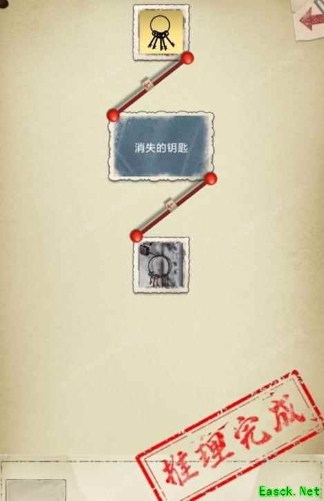 所示,将钥匙线索填入相应位置,即可解开消失的钥匙之谜。