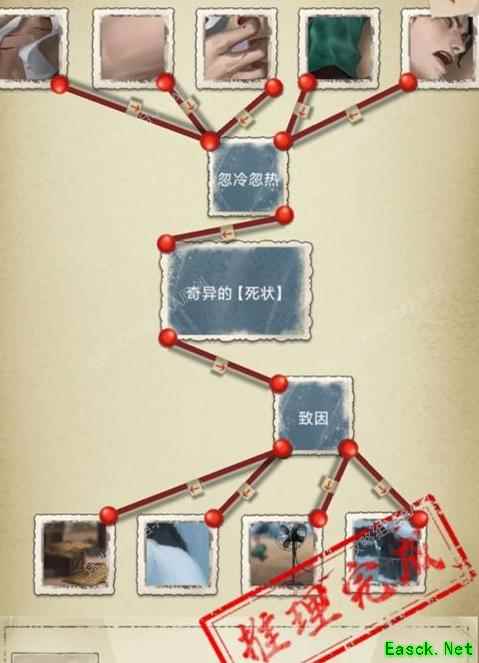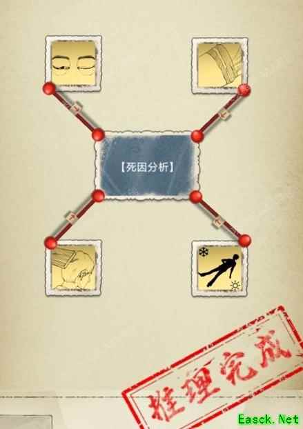 完成上述推理后,将获取新的线索,并按图示方式填入。待死因分析推理结束后,系统将自动进入问题环节。