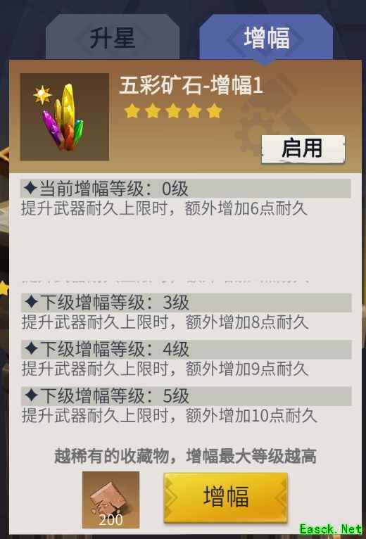 用于武器永久固化时,可降低紫水晶及材料消耗。