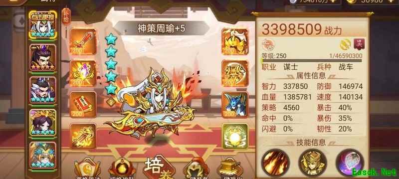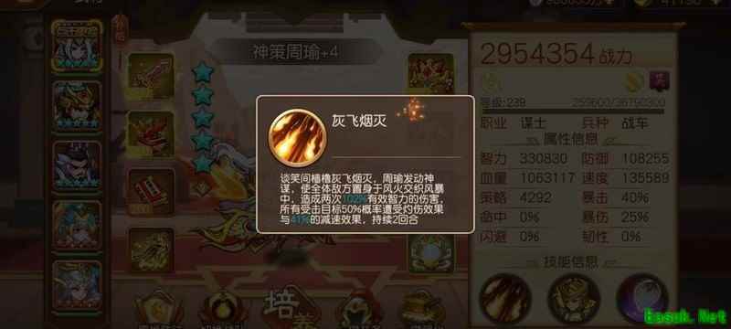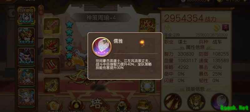 提升自身40%智力,使全体策略技能伤害增加30%,尤其增强炮弩、淹城计等策略的伤害效果。