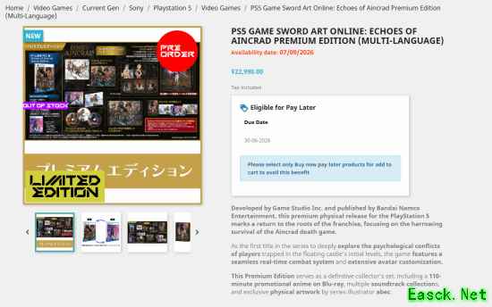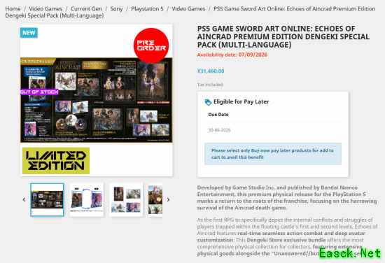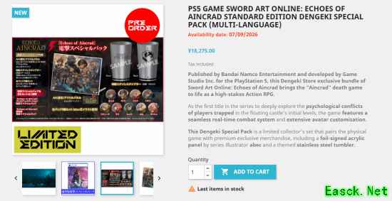 据博主Genki_JPN报道,《刀剑神域》IP新作《艾恩葛朗特 回荡新声》多款特别版已开启预售。