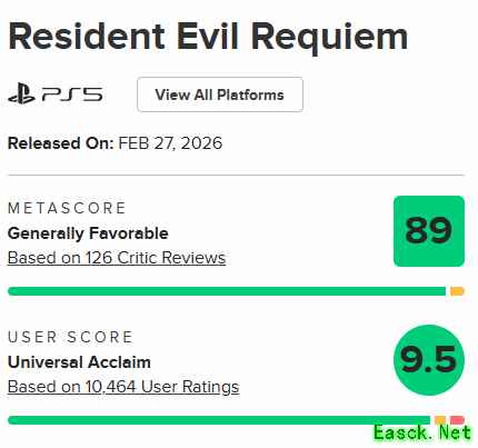 自2月27日发售至今,《生化危机:安魂曲》已陪伴玩家度过了一周有余。作为卡普空旗下最重磅的生存恐怖续作,里昂与新人主角格蕾丝的双线叙事、共享世界机制以及系列顶级的画面表现,让它在发售之初便创下M站用户评分9.4分(截止发稿前9.5分)、登顶历史第一的惊人战绩。