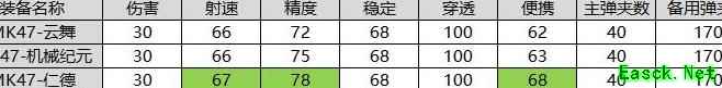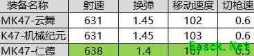 云舞与机械纪元在速度上相差无几,仅移速差1点属性,但两者相较仁德则明显逊色,无论哪项速度属性,仁德都全面超越这两款MK47。