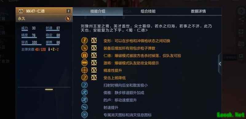 小结:仁德作为英雄级武器,其属性加成颇具亮点。首先在变形功能上,可切换为冲锋枪CZS2形态,但从实际操作来看,步枪形态的使用体验更佳,更适合多数战斗场景。其专属技能仁德在爆破模式中尤为实用——当前大多数玩家均使用英雄级武器作战,击杀敌人后不会掉落武器,导致残局时队友无法拾取所需装备,尤其对狙击手造成困扰。而仁德在被击杀后仍可被队友拾取,有效缓解了这一问题,增强了团队协作的灵活性。另一技能激将则侧重于视觉表现,当队友获得助攻时会触发全局特效展示,类似王者系列武器的连杀提示,提升了战斗中的荣誉感与观赏性。此外,该武器在精准度、受击后坐力控制以及移动速度方面均有优化提升,具体表现将在后续详细评测中展开分析。整体来看,仁德不仅具备实战价值,也在交互体验上做了深度打磨。