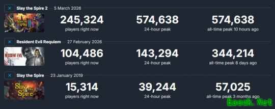 这意味着《杀戮尖塔2》已经是2026年迄今首发在线最高的游戏,轻松超过了人气爆棚的《生化危机9》(虽然是多平台),寻思着《GTA6》PC版不会推出,那么今年可能没有了对手,想不到其Steam首发记录会被哪款游戏超过。