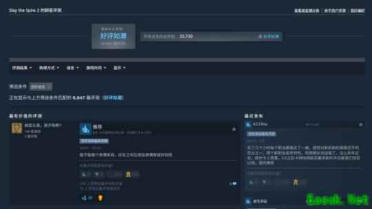 《杀戮尖塔2》于3月6日才登陆了Steam抢先体验,至今才过去了三天时间,Steam当前累计25720条评论,96%的用户给出好评,总体评价和简体中文评价均“好评如潮”。