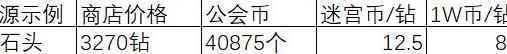 通过T2石头兑换钻石的比例,来推算公会迷宫币的实际价值。
