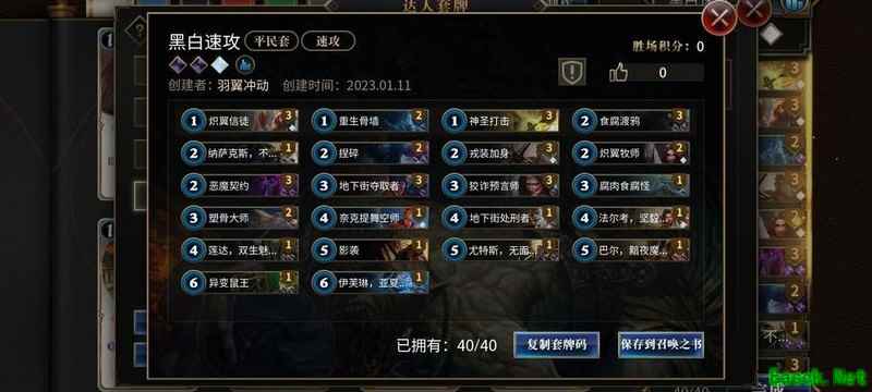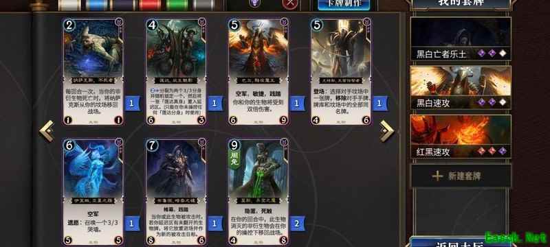 套牌构成:黑色与白色混合,核心卡牌包括一张异变鼠王(费用6)、两张捏碎(费用2)、三张神圣打击(费用1),以及伊芙琳,亚夏之殇一张(费用6)和法尔考,坚毅之壁一张(费用4)。配备三张戎装加身(费用2)和三张恶魔契约(费用2),辅以腐肉食腐怪一张(费用3)与尤特斯,无面蚀智者一张(费用5)。包含两张重生骨墙(费用1)、两张塑骨大师(费用3),以及地下街处刑者一张(费用4)。另有两张炽翼牧师(费用2)、一张影袭(费用5)和三张炽翼信徒(费用1)。加入三张食腐渡鸦(费用2)、纳萨克斯,不死者一张(费用2)和三张地下街夺取者(费用3)。同时携带三张狡诈预言师(费用3)、奈克提舞空师一张(费用4)、莲达,双生魅影一张(费用4)和巴尔,黯夜魔王一张(费用5)。整套牌通过黑白双色构建,强调节奏控制与场面压制,兼具解场与爆发能力。套牌代码为:l8x6eMkT7hP/GRUYGRg3FncakRPZGO4W+hYBF6YW/RNDEXcTgROLE48TkRGVG5kb。若需使用此套牌,请先复制该代码至剪贴板,随后进入达人套牌功能区,选择使用套牌码并完成粘贴操作,系统将自动加载全部卡牌配置。建议玩家根据当前环境适当微调单卡数量以适应对战趋势,充分发挥本套牌在中期的压制力与资源转换效率。