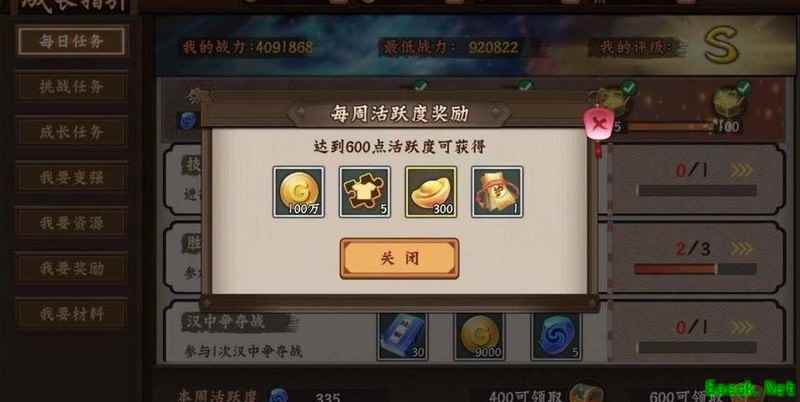 每周活跃任务累计每日完成情况,积分达400可领取150元宝,达600可再获300元宝。每周总计可得450元宝,按四周计算,每月稳定收入1800元宝,持续参与可积累可观资源。