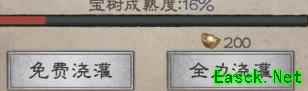 每次免费浇灌使朱果宝树成熟度提升0.1%,全力浇灌则可提升1%。