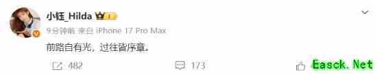 小钰也一同发文:“前路自有光,过往皆序章。”