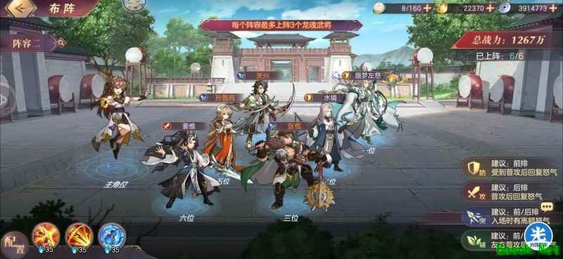姜维技能爆发强,觉醒与否影响不大,攻击需点满,其他属性随意;孙鲁育若无基础怒气,则置于一号位。