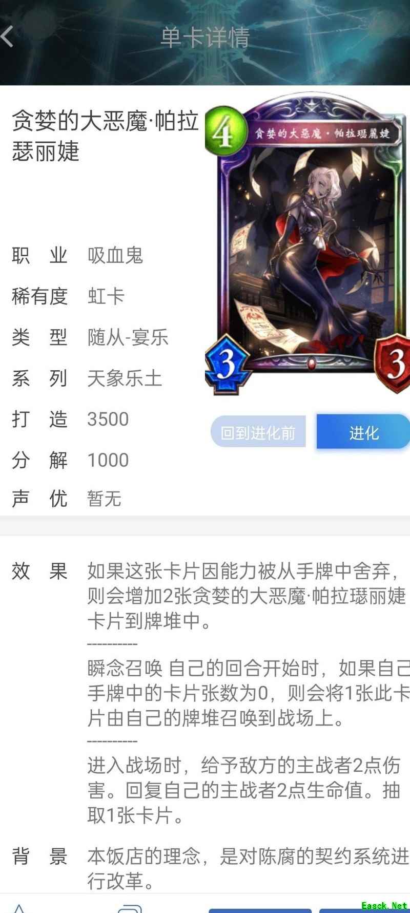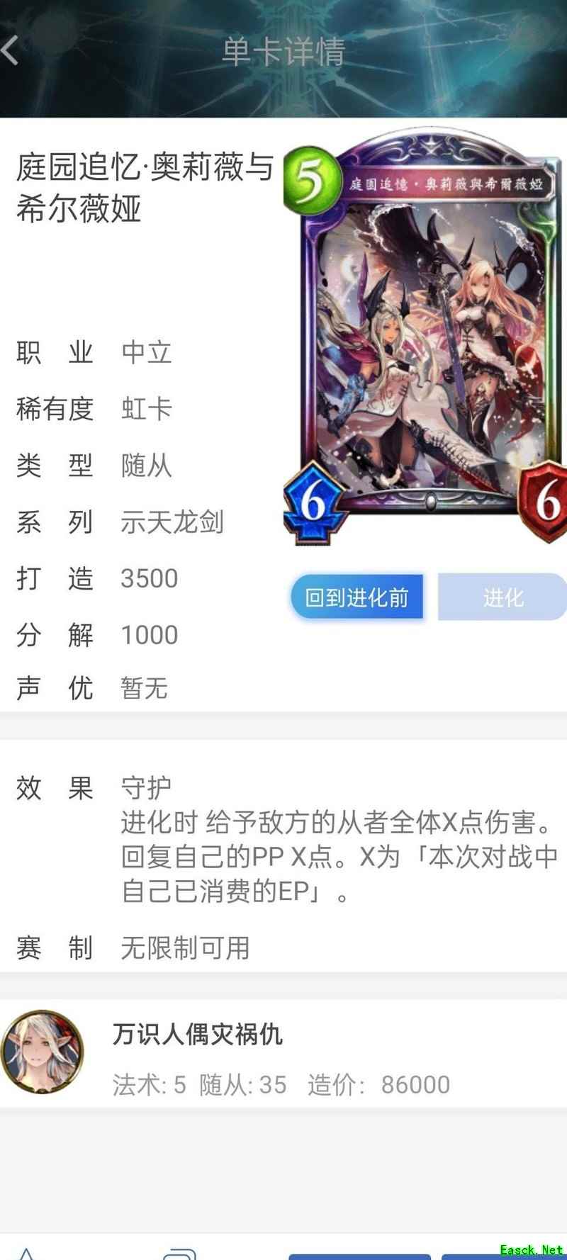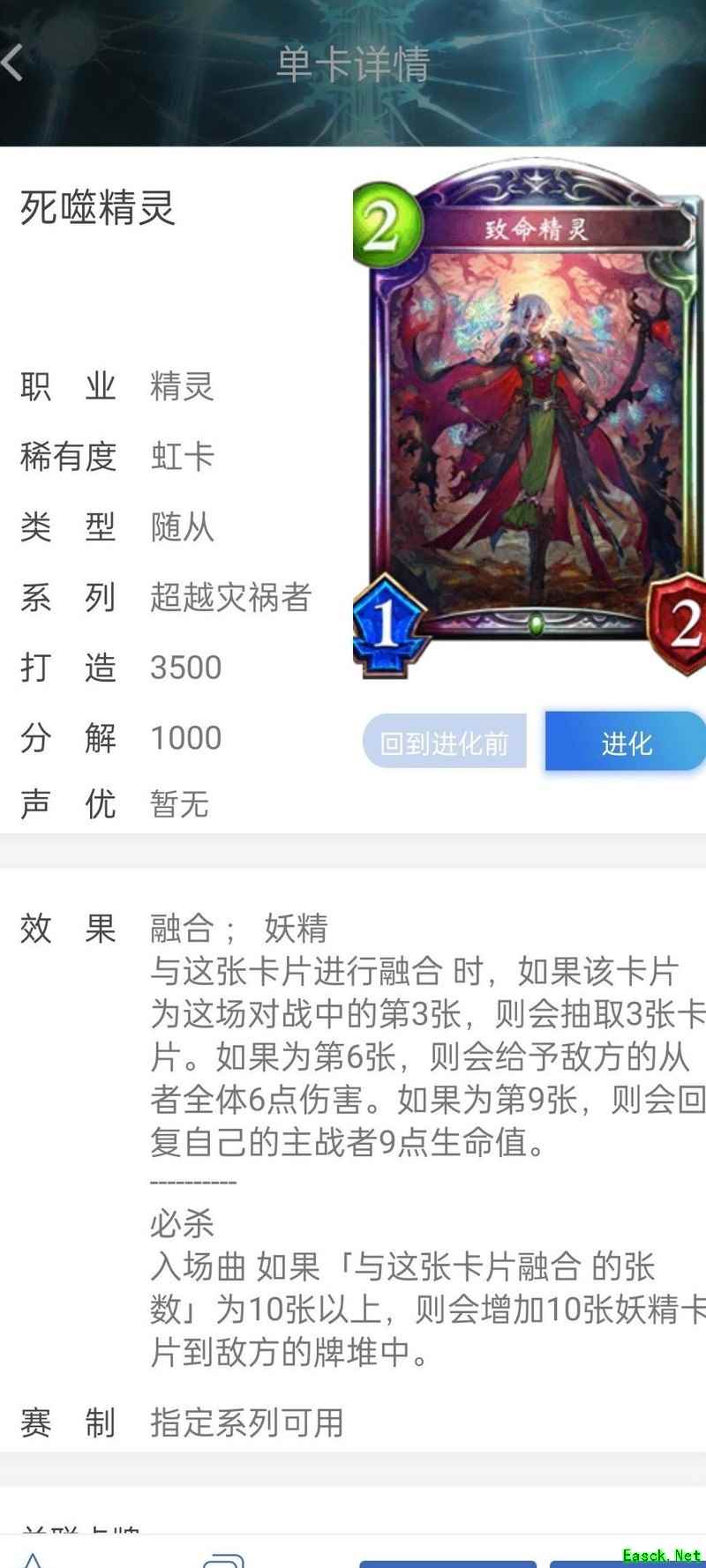 随从在进化时触发的效果,仅限手动进化才能激活。若因其他卡牌效果而自动进入进化状态,则此类进化时效果无法发动。不过,无论手动还是自动进化,只要完成进化,随从所获得的后续能力均保持一致。例如,双带姐的效果属于进化时触发,必须通过主动消耗进化点进化才能生效;而迷你灵魔的能力是在进化后直接拥有,因此无论何种方式进化,其效果都会正常发挥作用。