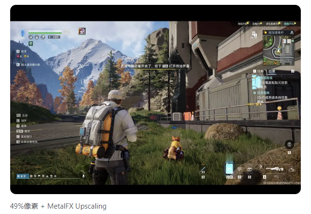 从官方公告来看,本次与苹果达成了深入合作,提前做好了M系列芯片适配与画质渲染等方面的优化,为了给幸存者带来更好的游戏体验,MAC版本引入了Metal FX upscaling与空间音频技术:MetalFX Upscaling将图形渲染的像素数量降低至49%,同时提供十分接近原生4K分辨率的画面。MetalFX Upscaling使得游戏同时获得了精致的画面和流畅的帧率。在渲染任务十分重度的游戏上,这一优势最为显著。