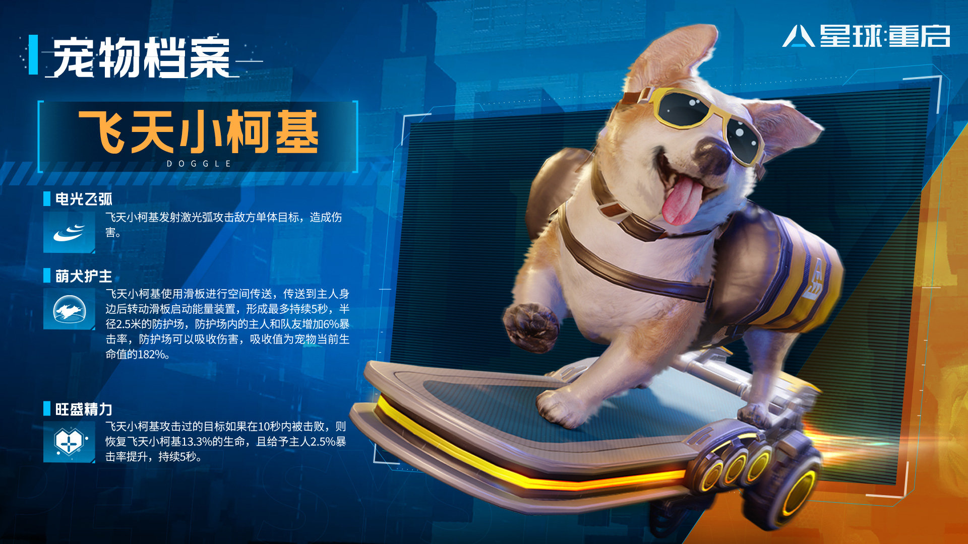战宠系统也是我特别喜爱的一个玩法,未来科技与可爱萌宠的完美融合,有基因重组、机械再造、生物融合等多个大类几十种战宠,每个战宠不仅是你未来世界的忠实伙伴,更有风格百变的战斗方式与你一起并肩作战——你可以牵着自带火箭加速滑板的柯基探索世界、也能与靠机械技术重生的小恐龙抵御外星怪兽。