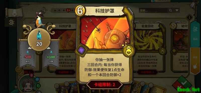 起手可直接弃掉,优先刷科技,每次失去防御可叠加两点,附带回血一效果,是掌控节奏的关键卡牌。