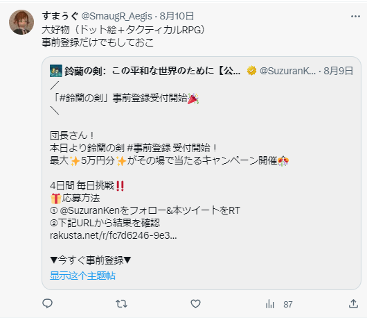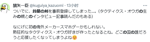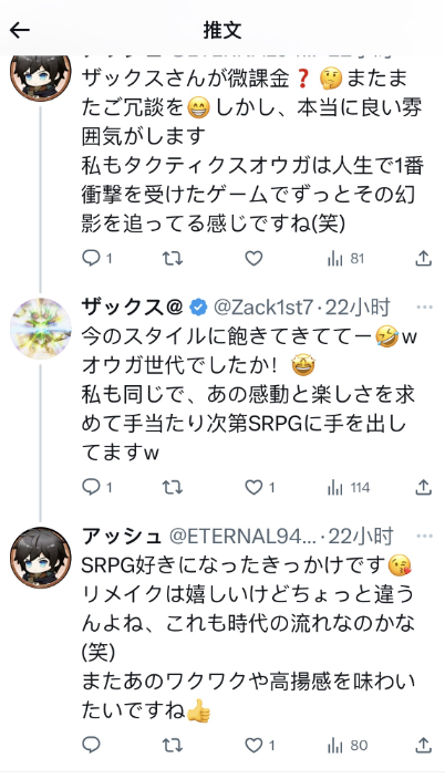 因此这份来自《皇家骑士团》之父的“钦点精神续作”认证,在战棋玩家眼中就相当有含金量了。在这场对谈放出后,《铃兰之剑》这款尚未上线面世的游戏,自然也在日本玩家中掀起了一波广泛讨论。对他们来说,一款来自中国—— 一个没怎么出过战棋名作的地方,由一个并非传统大厂的制作组做出的游戏,能得到一名著名制作人的青睐,本身就是一件值得关注的事情。