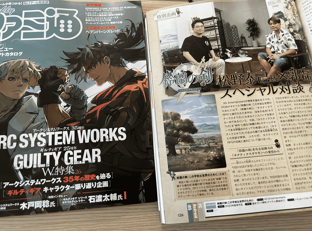 在此次对谈中,二人就《铃兰之剑》复古且精致的NeoPixel像素风、严肃且真实的世界构筑、能够改变世界的诸多选择以及角色特征鲜明、互动要素丰富的“精致策略”玩法进行了深入探讨。松野泰己也在本次对谈中盛赞铃兰是新世代战棋游戏的正统进化之作,而此次特别对谈活动,也同步登上了《Fami通》杂志报道。