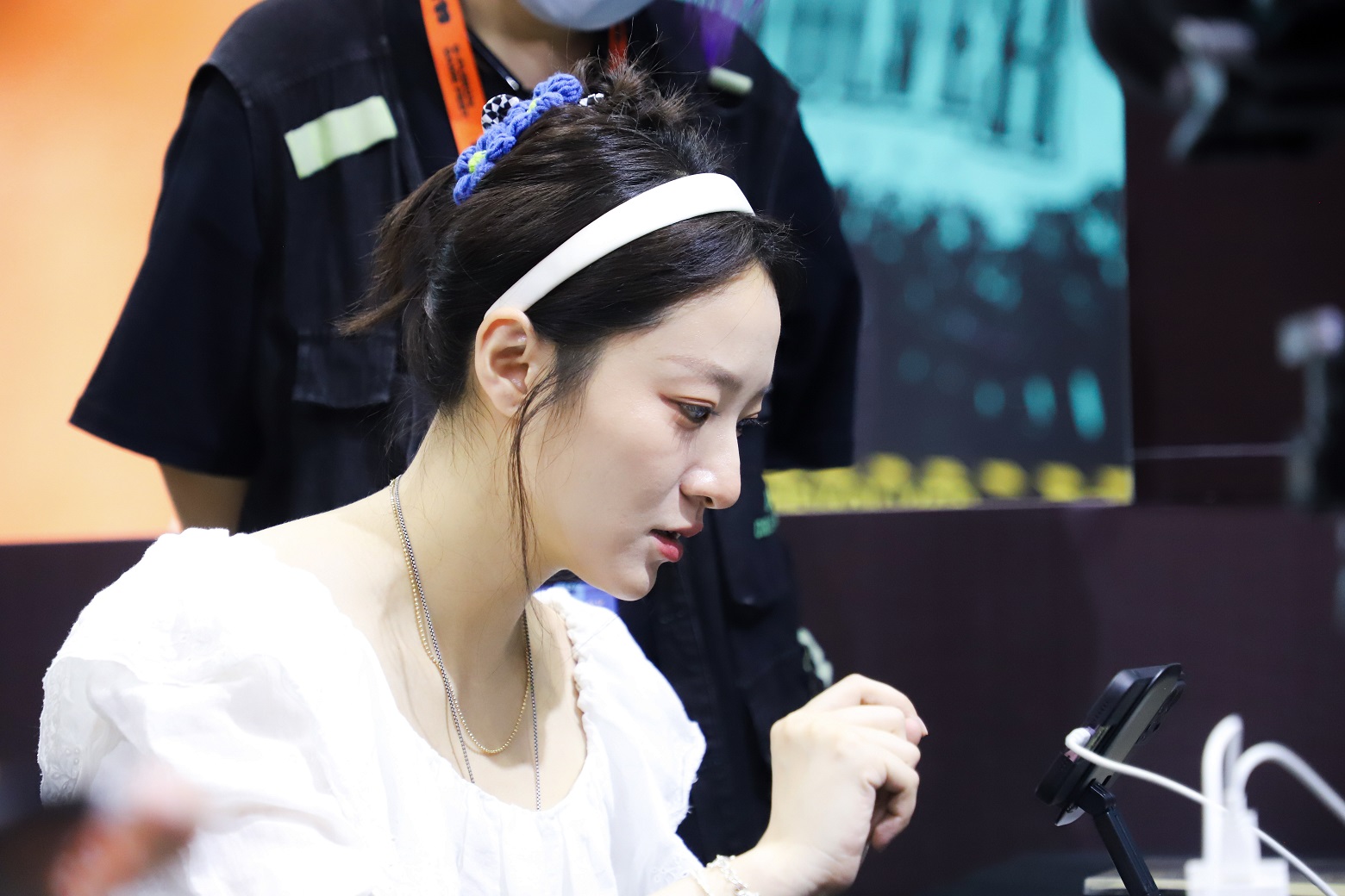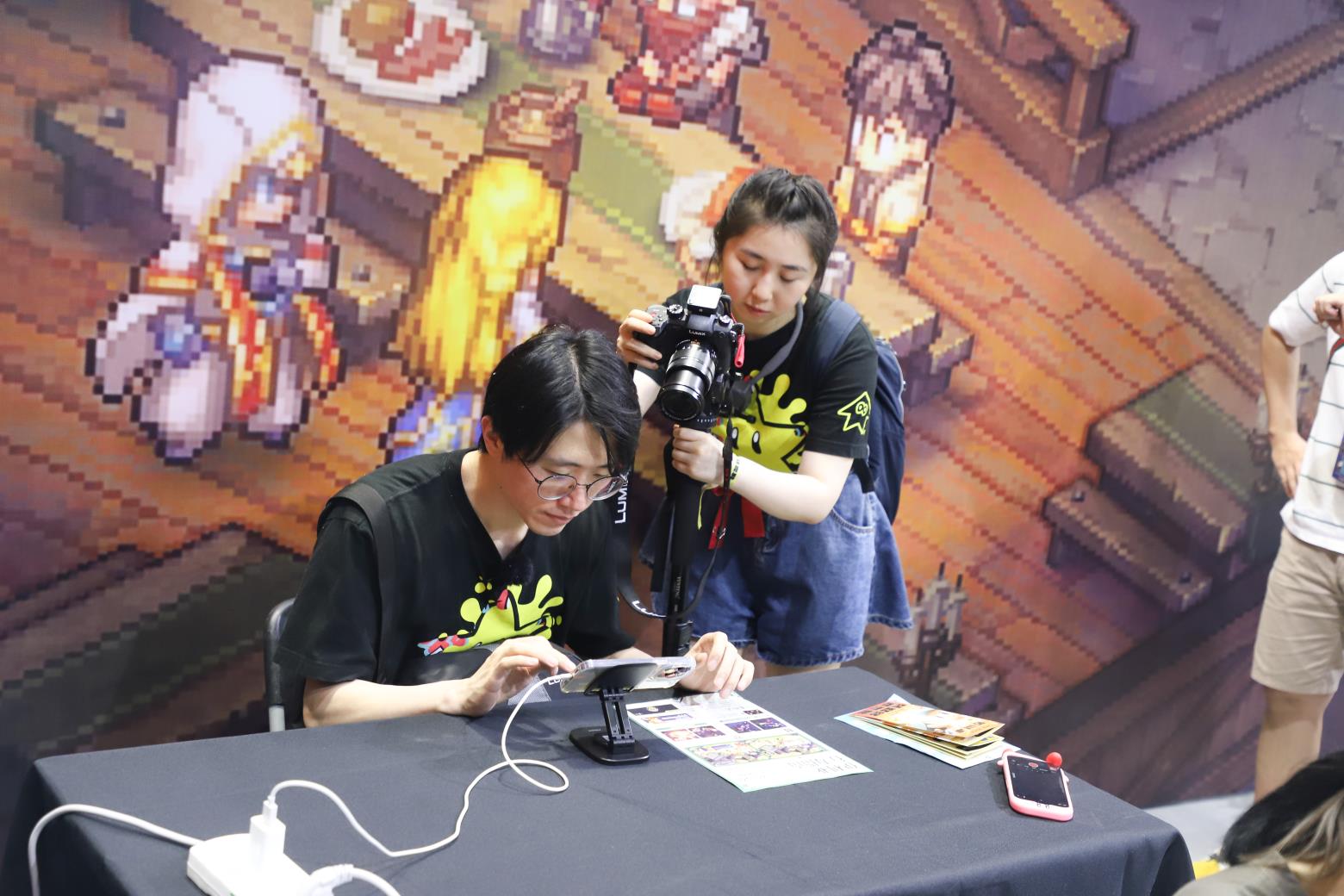 不止是《原子之心》,从业多年的张琦老师还曾涉猎过多位玩家耳熟能详的游戏角色,其中也包括《赛博朋克2077》中的女主角V。也正因如此,张琦老师也受邀担任《铃兰之剑》的中文配音导演,并主动来到《铃兰之剑》展台进行试玩!展台的玩家们频频与张琦老师进行交流,想要进一步了解《铃兰之剑:为这和平的世界》的游戏品质、幕后配音趣闻与老师负责的配音角色。毫不夸张的说,游戏坐拥负责配乐的崎元仁与配音导演张琦也大大增强了玩家对游戏的信心。