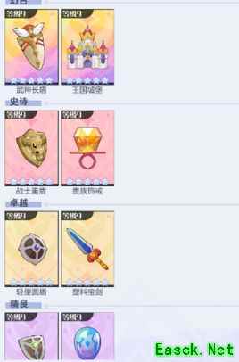 装备分为不同等级和品质层次。