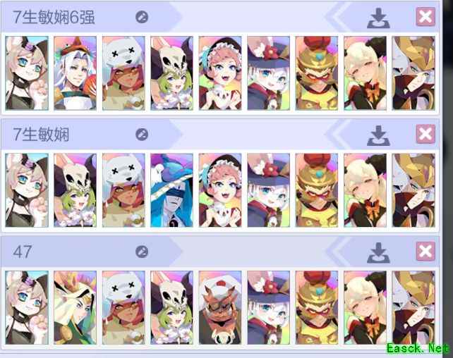 前排放置9级重生套装备,闪避属性拉满(搭配神器总闪避约800),海利拉和猫使用疾速,其他射手可随意搭配击飞效果。