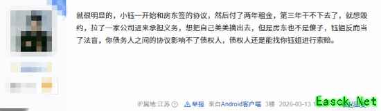 网友称:“就很明显的,小钰一开始和房东签的协议,然后付了两年租金,第三年干不下去了,就想毁约,拉了一家公司进来承担义务,想把自己美美摘出去,但是房东也不是傻子,钰姐反而当了法盲,你债务人之间的协议影响不了债权人,债权人还是能找你钰姐进行索赔。”