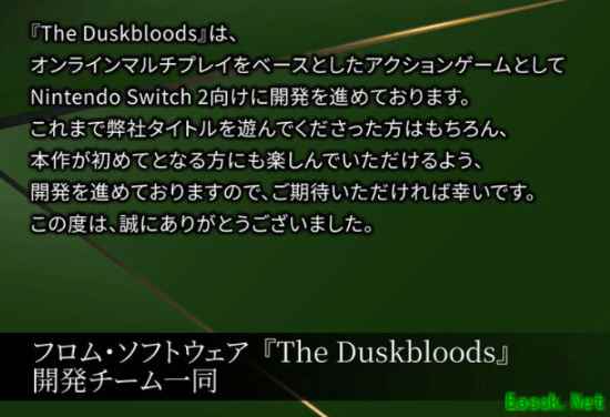 而FS社对此也发表了感言:《黄昏之血》是一款基于在线多人游玩的动作游戏,目前正在针对Nintendo Switch 2平台进行开发。