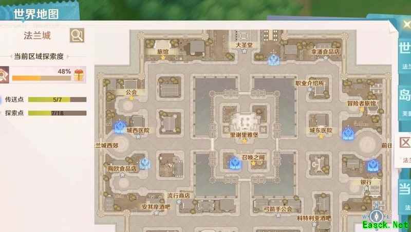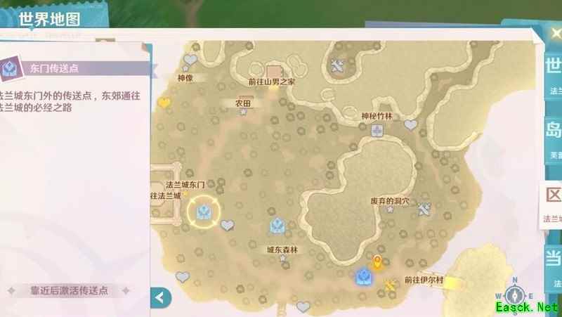 为方便勇者在魔力世界中自由行动,地图设有众多传送点,只需前往蓝色图标处即可激活并解锁传送功能。