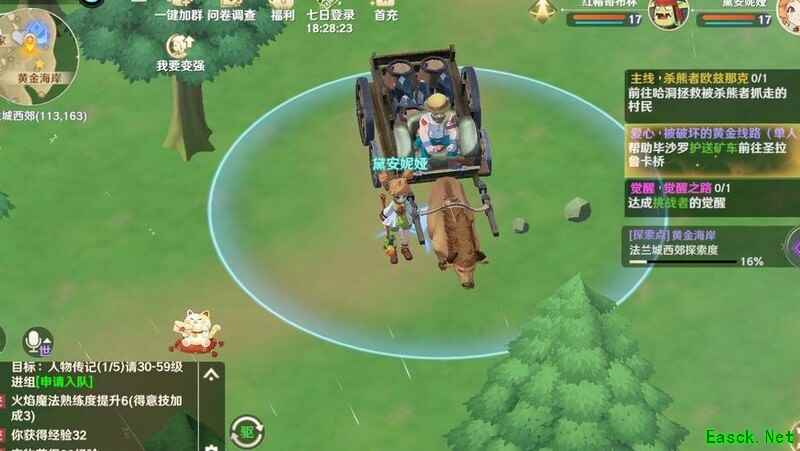 尽管爱心任务不同于主线,通常需玩家手动操作,但只要依照NPC指引和任务栏提示,便能顺利推进。例如护送类任务,需操控角色紧随牛车前行,始终保持在蓝色范围圈内,全程跟随直至抵达终点,即可成功完成。