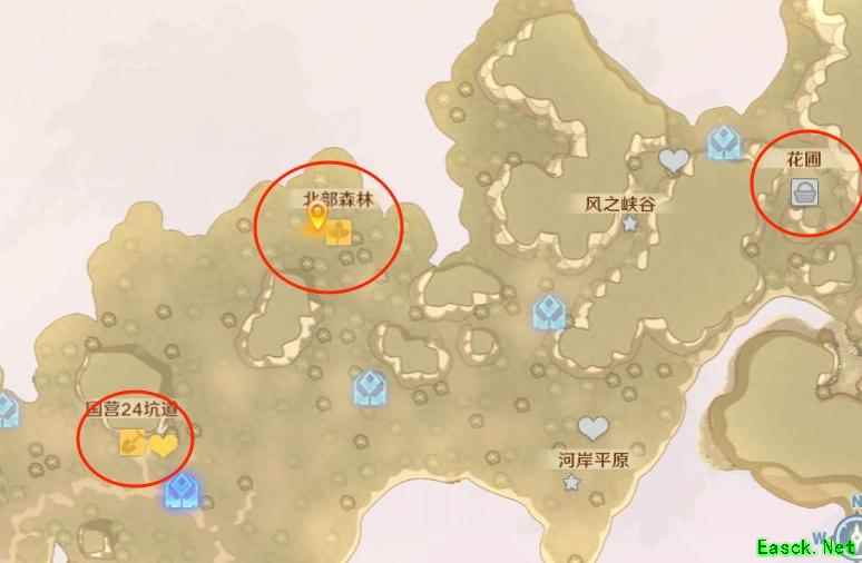 地图中分布着众多资源点,以叶片图标标识,为玩家提供生活技能所需材料。热衷于制造的冒险者应重点关注这些地点,以便收集资源,提升制作技艺,充分发挥生产类玩法的优势。