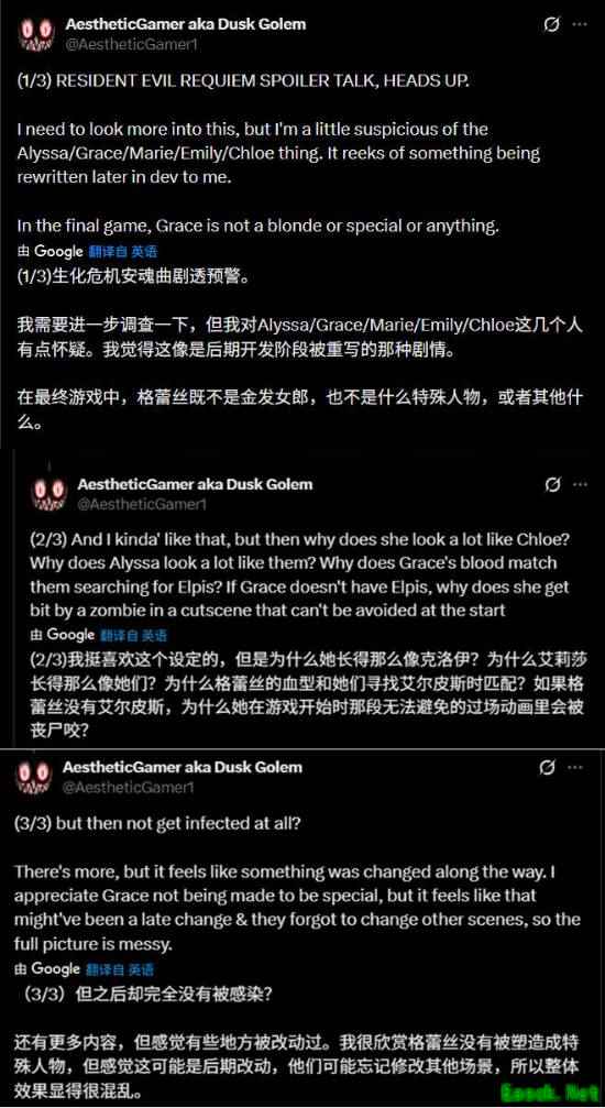 曾精准爆料《生化危机9:安魂曲》双主角及里昂回归的Dusk Golem今日发文,提出了一系列关于游戏剧情的分析与疑问。