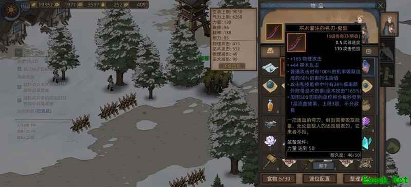 若成功刷出凤凰,带回城镇出售可获得250玉石,同时顺带完成公主任务,额外收获100玉石与一个智慧结晶。返回领地后,优先升级主城与图书馆,同时将喷火器技能点满——满级后拥有五段燃烧伤害,并附带35%物理免疫加成,极大提升生存与输出能力。接着前往红石谷的巨大熔岩洞,刷取本流派的核心武器名刃·鬼烈。该武器具备无差别范围流血效果,最关键的是其自带普通攻击吸血+50%词条,配合五段燃烧效果极佳。由于武器会对自己造成反伤,建议前往秘籍商人处刷取流血抗性装备以平衡风险。