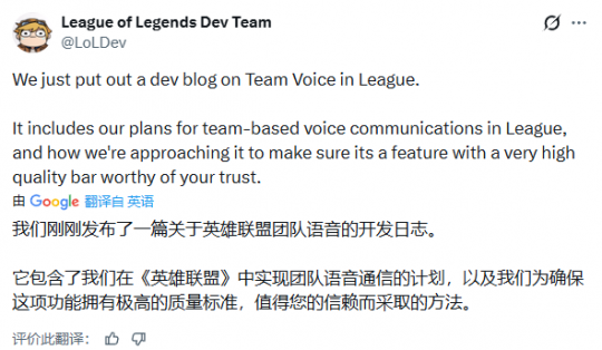 拳头也承认玩家对语音变“对骂现场”的担忧:“我们听到了你们的顾虑,也承诺绝不会让那种情况发生。”