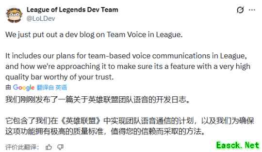 拳头也承认玩家对语音变“对骂现场”的担忧:“我们听到了你们的顾虑,也承诺绝不会让那种情况发生。”