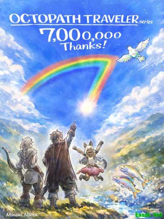 史克威尔艾尼克斯近日宣布,旗下HD-2D风格RPG《八方旅人》系列全球累计出货量与数字版销量已正式突破700万份。为纪念这一里程碑,官方发布了一张全新的纪念贺图。