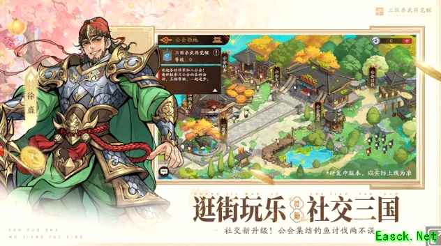 除了公会社交,你还能时不时的浏览武将的朋友圈,看下蔡文姬近期安利的新产品,或者是张飞四处约酒的消息,甚至有荀彧为大魏招聘人才,徐盛售卖江东江景套房的内容。