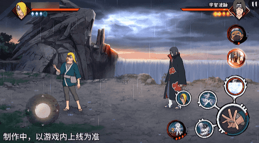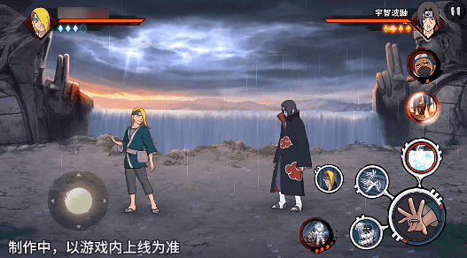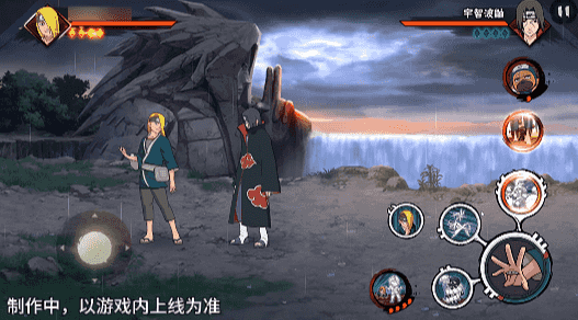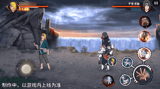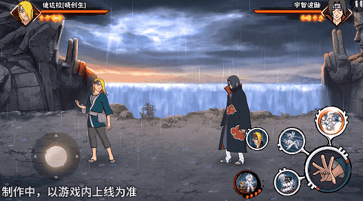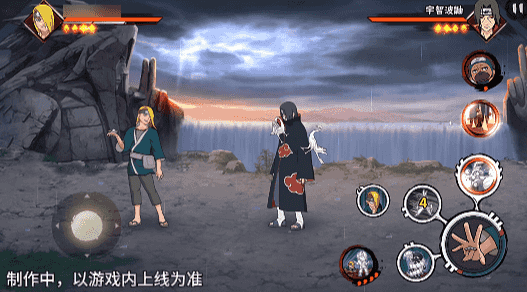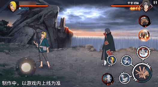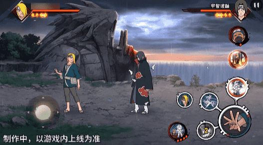晓创生迪达拉可主动使用替身,每次使用消耗一个奥义点,在原地留下粘土分身,本体则遁入地面,遁地期间可拉动摇杆选择破土位置。留下的粘土分身可阻挡攻击,受到攻击后会变回粘土颜色并膨胀爆炸。若分身一直未受击,则会在一段时间后自动爆炸。