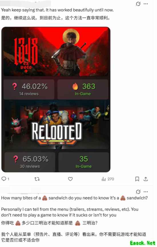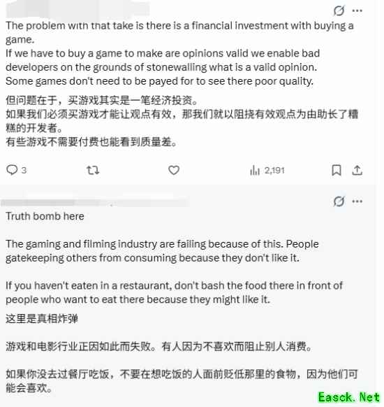 有玩家表示说的有道理,既然没玩过就不要评价,你喜不喜欢不重要。也有玩家表示难道要花费一堆时间和金钱体验一堆垃圾再评价?多劝一些玩家避雷不行吗?
