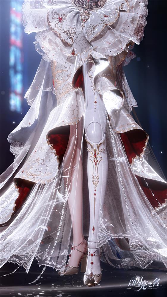当然,这套瓷心傀儡六星套装最突破的,还是在服装的“用料”层面。在材质层面上的使用,可以说达到了业界的顶尖水平,高达148种材质的使用,让这套六星时装从发丝到特效的表现,都细腻无比。不仅如此,这套时装在设计上也加入了大量的雕花纹路和金属花纹,而且是直接叠加在半透布料上。相比于其他游戏,对于单层透光的材质都还在尝试使用贴图实现模拟效果,在《以闪亮之名》游戏中却使用了多达10层的半透明材质。显然这样呈现出的套装效果最为出色,光线穿透不同半透材质之后的柔光效果夹杂着每一层布料上的花纹,才是这套瓷心傀儡六星套装称得上开启技术3.0时代的原因。