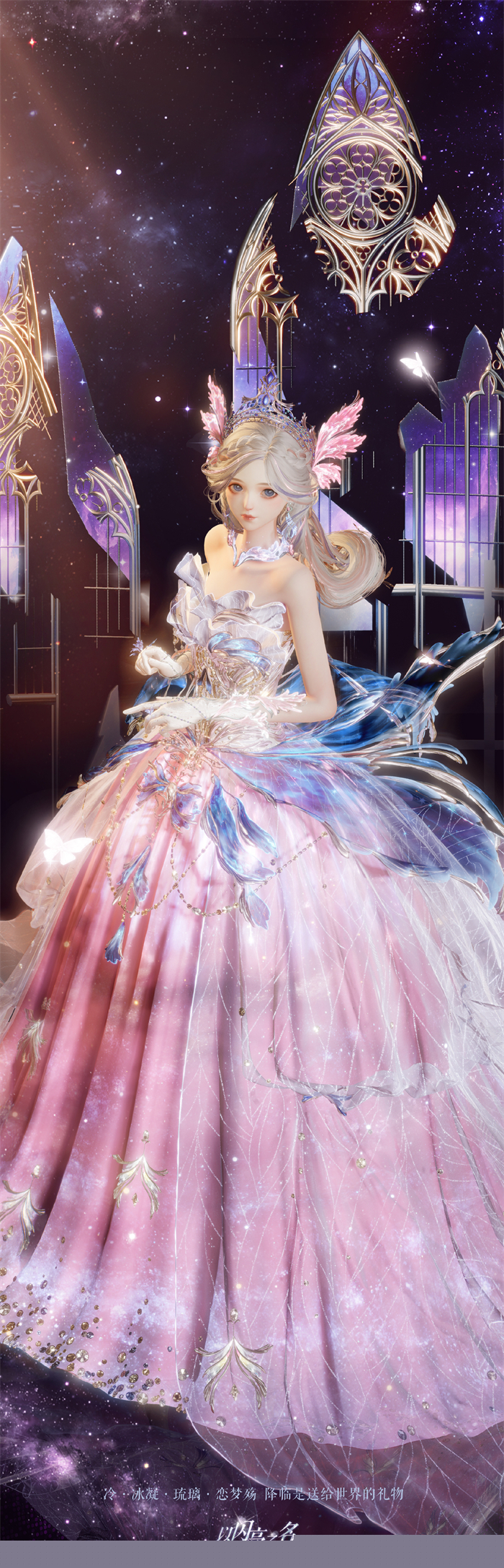 就在近期(5月15日),《以闪亮之名》更新了全新的星河坠梦版本,时隔几个月再一次带来了又美又闪的绝美大裙子。宛如身披银河的绚烂效果,灵蝶飞舞的梦幻特效、配合上双形态的巴洛克风格窗栅背景,流星划过,活脱脱就是一个在银河中漫游的蝴蝶幻化成了人。而正是这套来自新版本中的六星绮梦星河套装,成为了玩家们口中的又一套“炫技之作”。