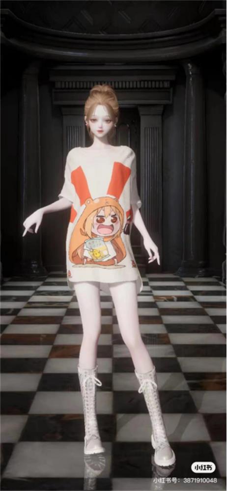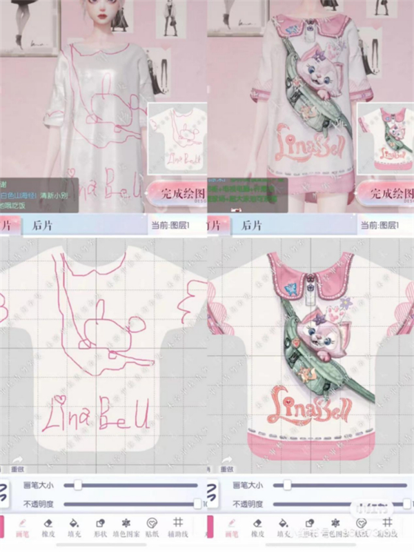 还有玩家绘制除简单的图案组件,再交给专业的手绘大佬帮忙设计,一款可爱圆领的玲娜贝儿就活灵活现出现在眼前啦!
